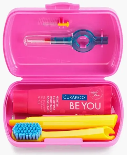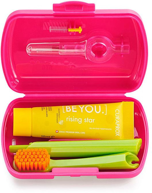 Curaprox Travel Set — дорожный набор для гигиены полости рта, который удобно брать с собой в путешествия, командировки или на каждый день. Этот компактный комплект содержит всё необходимое для поддержания чистоты зубов и свежести дыхания вне дома.