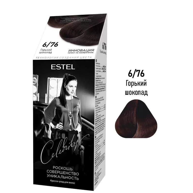 Краска-уход для волос Estel Celebrity оттенок 6/76 «Горький шоколад» — это безаммиачная крем-краска полуперманентного типа, предназначенная для мягкого окрашивания и одновременного ухода за волосами. Оттенок представляет собой тёмно-русый цвет с насыщенным шоколадно-коричневым подтоном, который выглядит глубоким и естественным, без яркой рыжины. Краска обеспечивает равномерное окрашивание по всей длине, придаёт волосам глянцевый блеск и помогает выровнять цвет, а также подходит для закрашивания седины, хотя при большом её количестве результат может быть менее плотным.