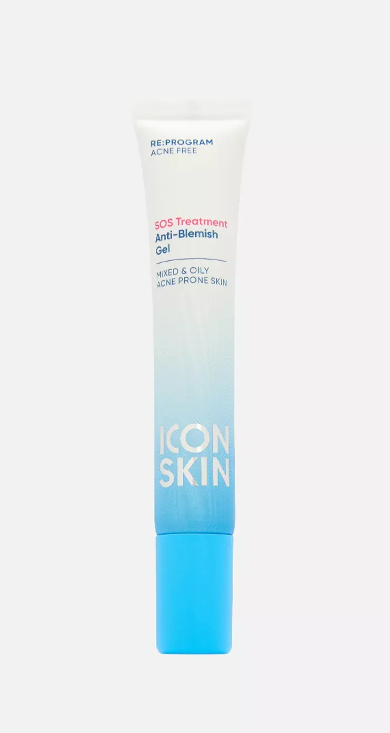 ICON SKIN SOS Treatment Anti-Blemish Gel — это точечный гель против высыпаний, предназначенный для быстрого локального воздействия на прыщи, акне и воспаления. Он наносится непосредственно на проблемные участки кожи, проникает в поры, уменьшает воспаление, подсушивает высыпания, снижает покраснение и ускоряет заживление, а также помогает предотвратить появление новых несовершенств. Средство имеет лёгкую гелевую текстуру, быстро впитывается, не требует смывания и может использоваться в течение дня.