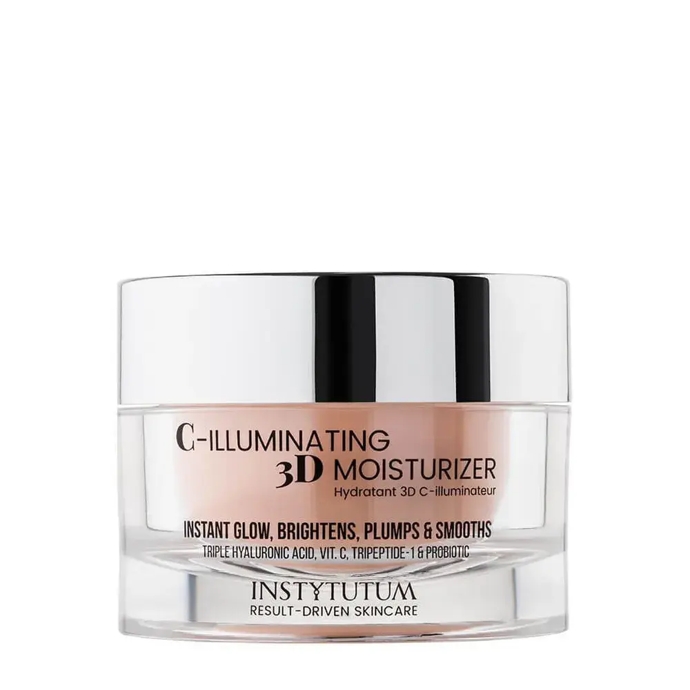 Дневной увлажняющий крем C-Illuminating 3D Moisturizer на основе 3 форм витамина С формирует на поверхности кожи искрящийся, атласный эффект, который поможет скрыть мелкие недостатки и придать лицу ровный оттенок, с легким эффектом свечения, навсегда отказавшись от тональных средств, праймера и консиллера.