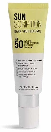 Солнцезащитный крем оказывает мощное увлажняющее воздействие и осветляет пигментацию. Содержит большое количество антиоксидантов, помогает уменьшить тёмные пятна и предупредить дальнейшее изменение цвета эпидермиса. Лёгкий тонирующий крем быстро впитывается и комплексно защищает эпидермис.