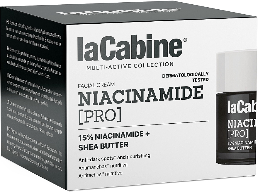 LaCabine Niacinamide PRO 15% — это крем для лица с 15% ниацинамидом и маслом ши, разработанный для укрепления кожного барьера, улучшения текстуры кожи и интенсивного увлажнения. Лёгкая, но питательная текстура быстро впитывается, не оставляет ощущения тяжести и подходит для ежедневного ухода. Ниацинамид помогает выравнивать тон кожи, уменьшать покраснения, регулировать выработку себума и делает кожу более гладкой и ухоженной. Масло ши обеспечивает глубокое питание и смягчение, способствует уменьшению сухости и стянутости.