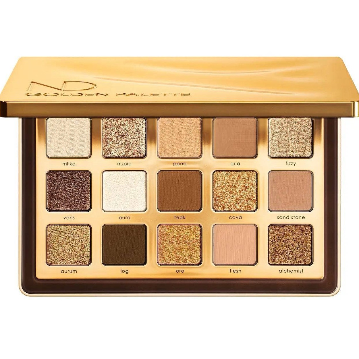 Natasha Denona Golden Eyeshadow Palette — это профессиональная палетка теней из 15 оттенков в теплой золотисто-нейтральной гамме, сочетающая матовые, металлические и сияющие текстуры. В палитре представлены кремово-пудровые матовые оттенки для мягкой растушёвки и создания глубины, а также насыщенные металлики и сияющие формулы с эффектом влажного блеска для выразительных акцентов.