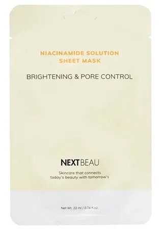 NEXTBEAU Niacinamide Solution Sheet Mask — это выравнивающая тканевая маска для лица с ниацинамидом, пропитанная эссенцией, которая помогает улучшить цвет кожи, сделать её более свежей и здоровой, сужает поры, тонизирует и увлажняет кожу всех типов. Ниацинамид (витамин B3) в составе способствует защите от свободных радикалов, помогает осветлить тусклый тон, уменьшить проявления пигментации и поддерживать упругость кожи, а экстракты ягод и растений обеспечивают антиоксидантную защиту и дополнительное увлажнение.