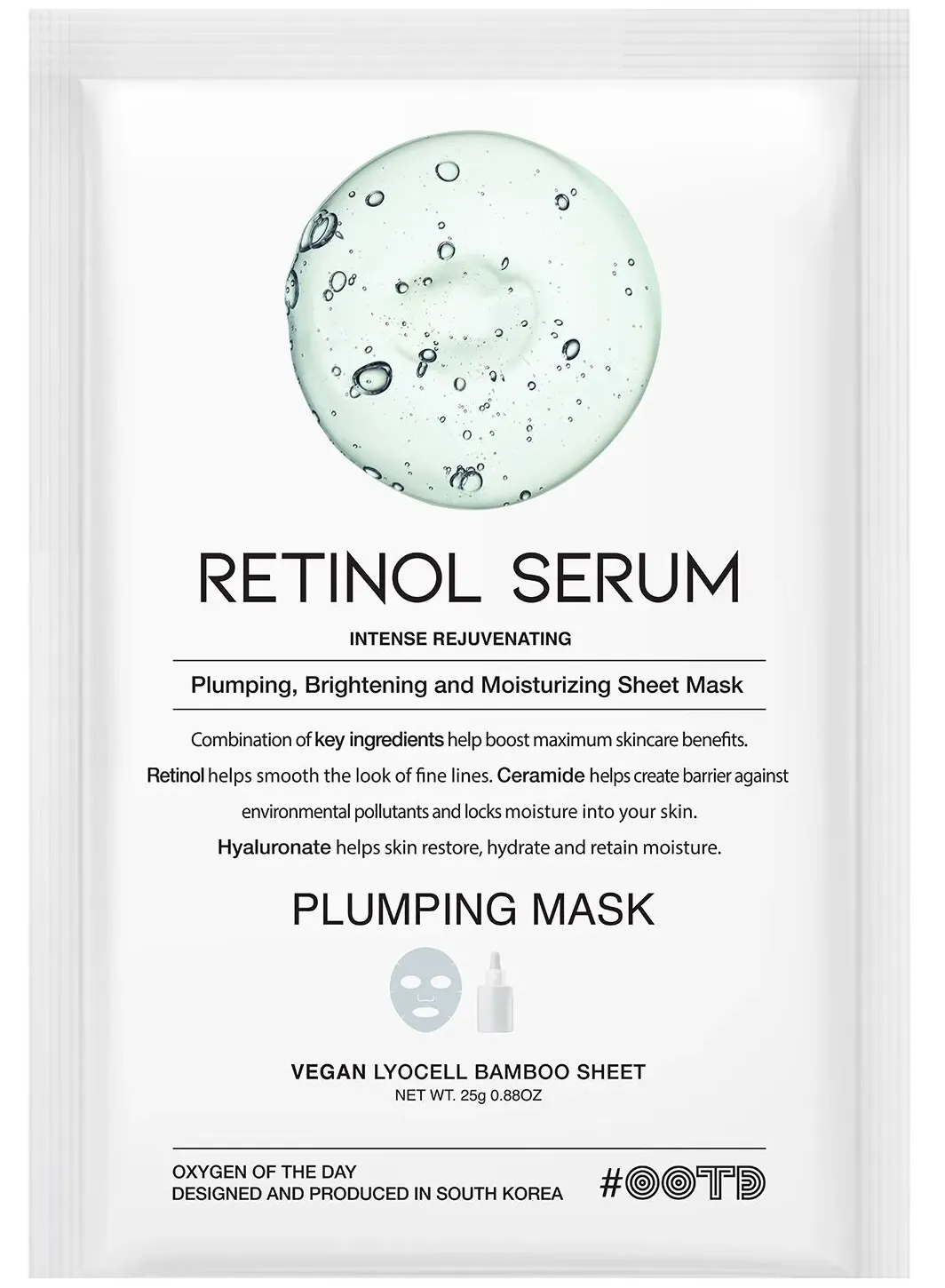 OOTD Retinol Serum Plumping Mask — это тканевая маска для лица, которая содержит ретинол и специально разработана для питания и восстановления кожи. Маска помогает улучшить текстуру кожи, способствует уменьшению морщин, выравниванию тона и повышению упругости. Ретинол стимулирует выработку коллагена, что способствует более молодой и гладкой коже.