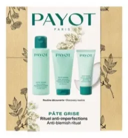 В набор для ухода за жирной и комбинированной кожей PAYOT входят увлажняющая и матирующая эмульсия для лица PATE GRISE Émulsion matifiante hydratante (30 мл), мицеллярная вода для снятия макияжа PATE GRISE Eau micellaire démaquillante purifiante (100 мл), очищающий гель для лица PATE GRISE Gelée nettoyante moussante purifiante (50 мл).