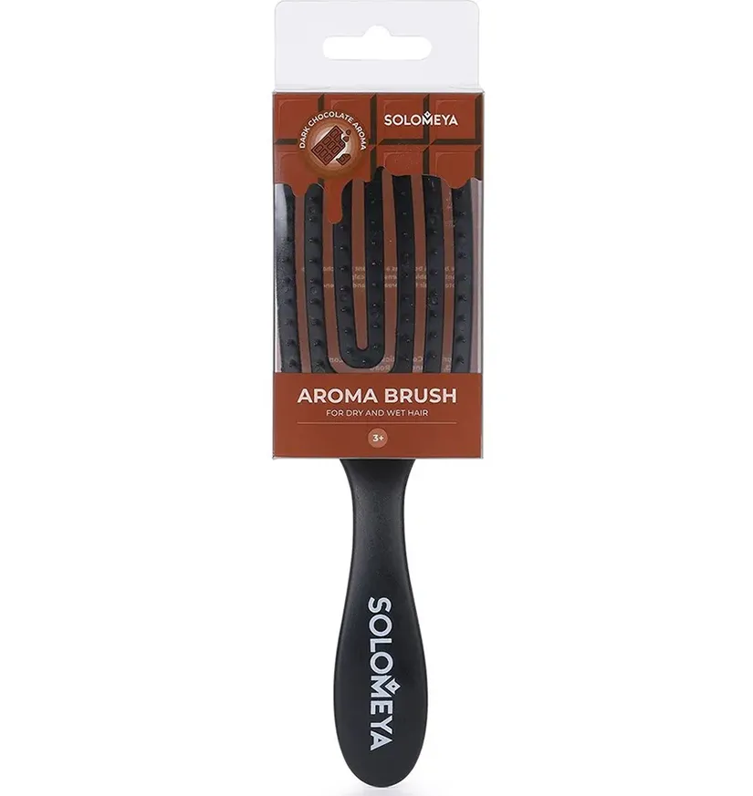 Solomeya Aroma Brush Dark Chocolate — компактная ароматизированная расческа для бережного ухода за волосами. Мини-формат делает её удобной для повседневного использования и позволяет легко брать с собой в сумку, в поездки или в спортзал.